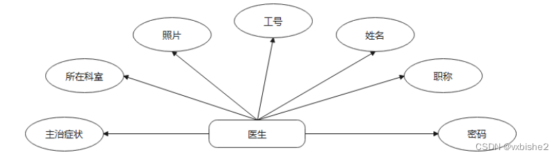 医生:存储各种医生信息。包括医生工号、密码、医生姓名、性别、职称、所在科室、主治症状、照片、是否审核等数据项。
