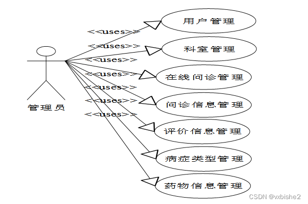在线问诊管理:管理医生信息、科室信息、就职医院等信息进行管理。