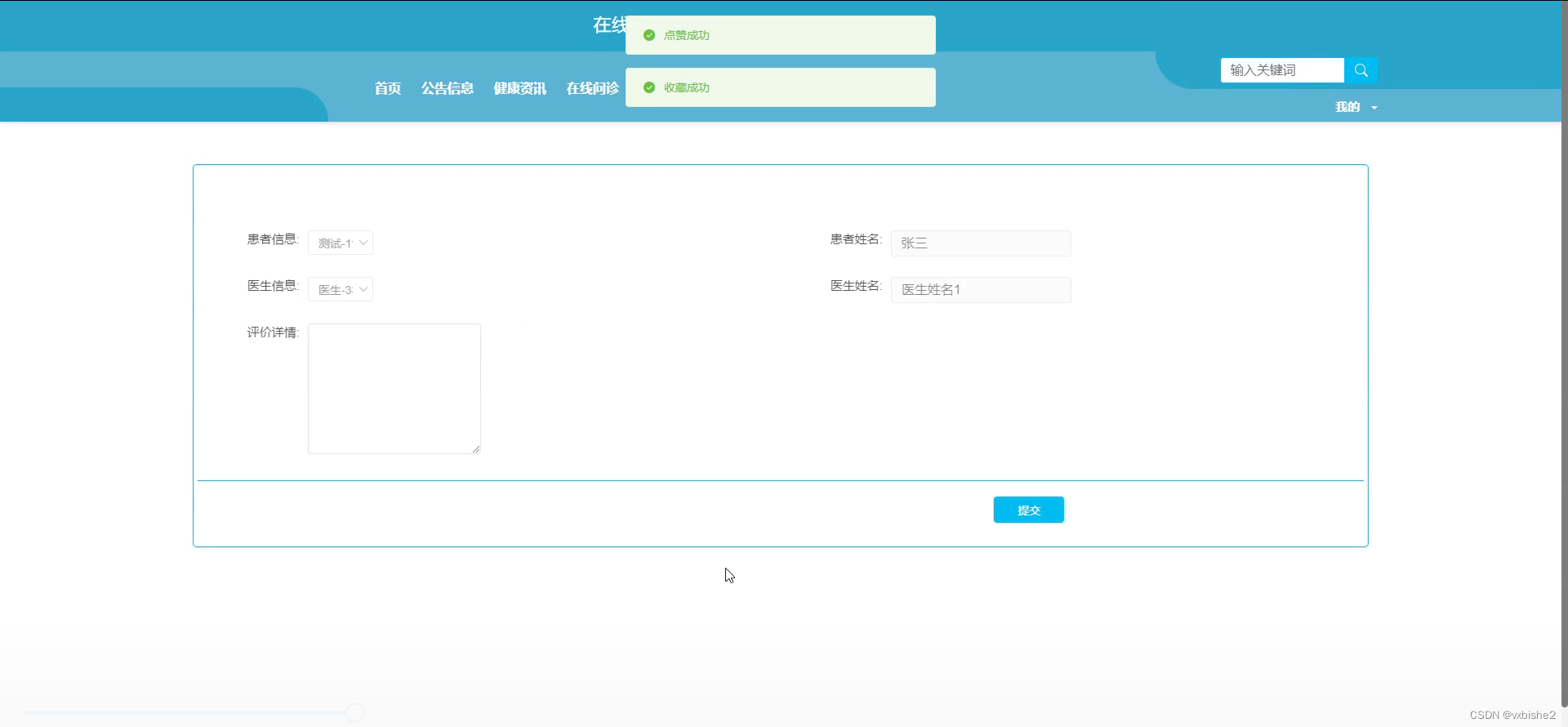 模块管理:用户可以查看自己的问诊信息和评价信息。