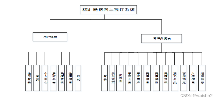 本民宿网上预订系统主要包括两大功能模块,即管理员功能模块和用户模块。