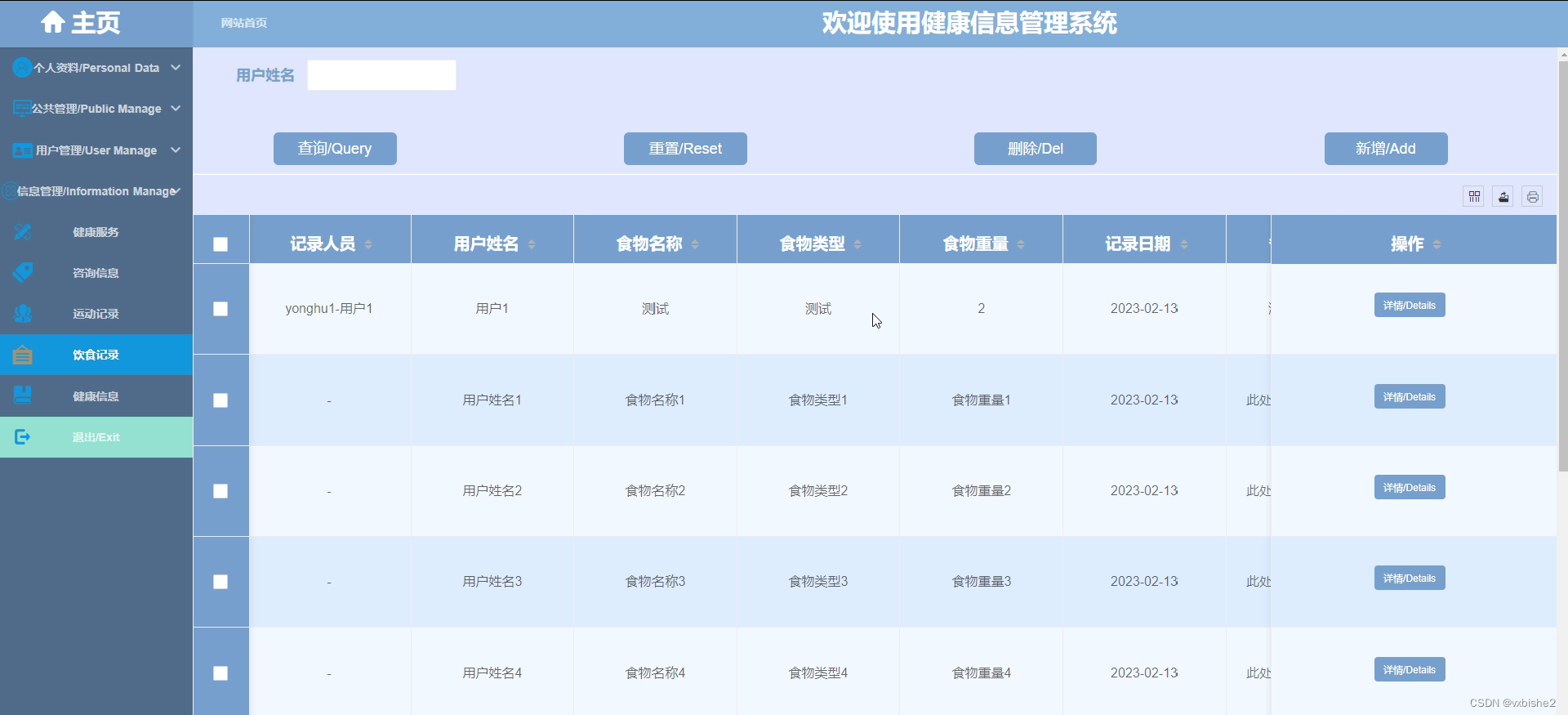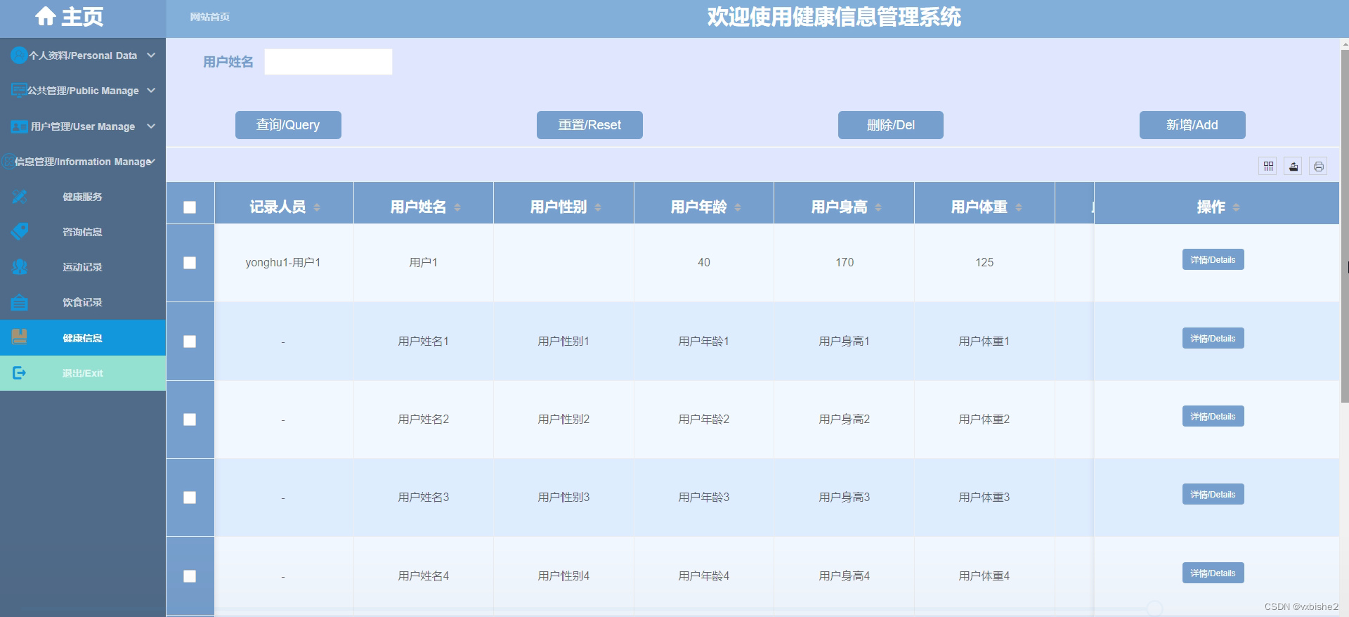 6.管理员功能,管理员可以对用户或者用户健康信息进行管理。