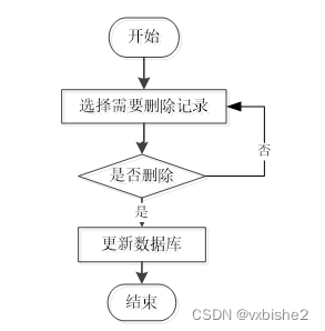 用户可选择要删除的信息进行信息删除操作,在删除信息时系统提示是否确定删除信息,是则删除信息成功,系统数据库将信息进行删除。删除信息流程图如图2-4所示。