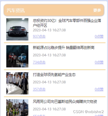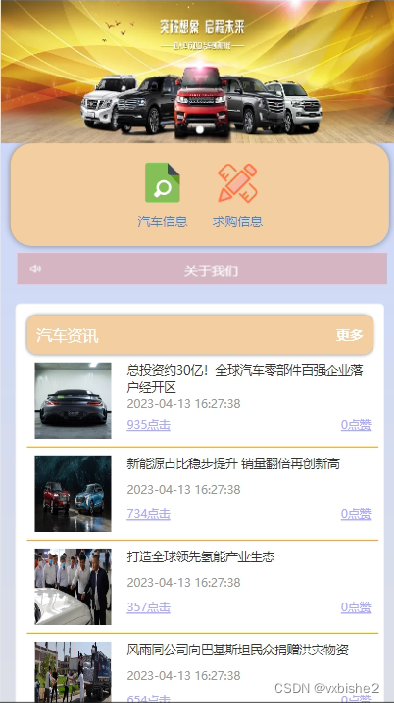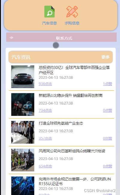 汽车资讯详情页面可查看标题、发布时间、内容等,并可对资讯收藏、点赞、评论等操作,如图5.13所示。