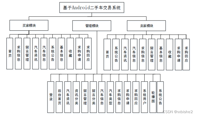 对于本二手车交易系统的设计来说,它主要是采用后台采用java语言、SSM框架,它是应用mysql数据库、Android等技术动态编程以及数据库进行努力学习和大量实践,并运用到了APP的建设中在整个系统的设计当中,具体根据二手车交易系统的现状来进行开发的,具体根据用户需求实现二手车交易系统网络化的管理,各类信息有序地进行存储,进入二手车交易系统页面之后,方可开始操作主控界面,系统功能包括管理员服务端:后台首页、轮播图、系统公告管理、系统用户、汽车资讯、留言管理、汽车信息、汽车类型、求购申请、求购信息、求购回应等功能。