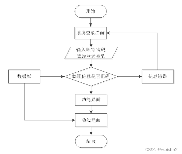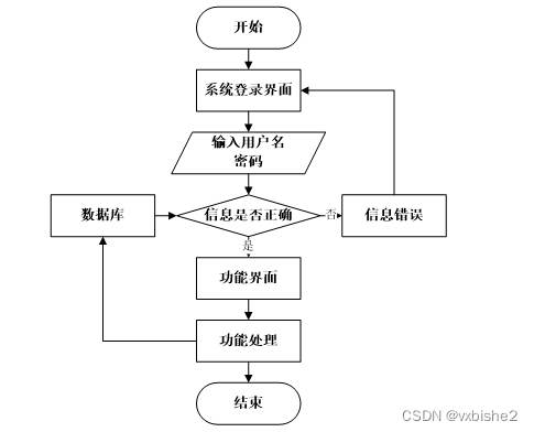 用户打开客户端并进入系统后,会先显示登录界面,输入正确的用户名和密码,系统自动检测信息,若信息无误,则用户会进入系统功能界面,进行操作,否则会提示错误无法登录,操作流程如图3-3所示。