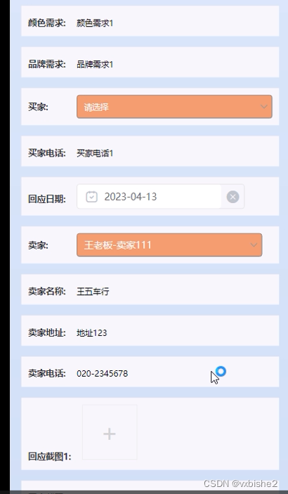 卖家用户可在汽车信息页面添加汽车名称、展示封面、汽车类型、汽车型号、汽车颜色、汽车品牌、表显里程、汽车排量、汽车年限、销售价格、图片等详细信息进行发布闲置的二手汽车信息,如图5-17所示