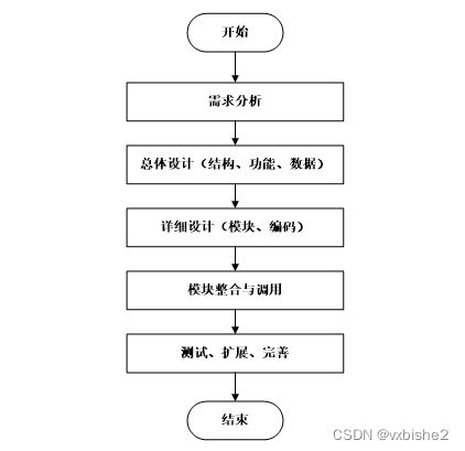 二手车交易系统开发时,首先进行需求分析,进而对系统进行总体的设计规划,设计系统功能模块,数据库的选择等,本系统的开发流程如图3-1所示
