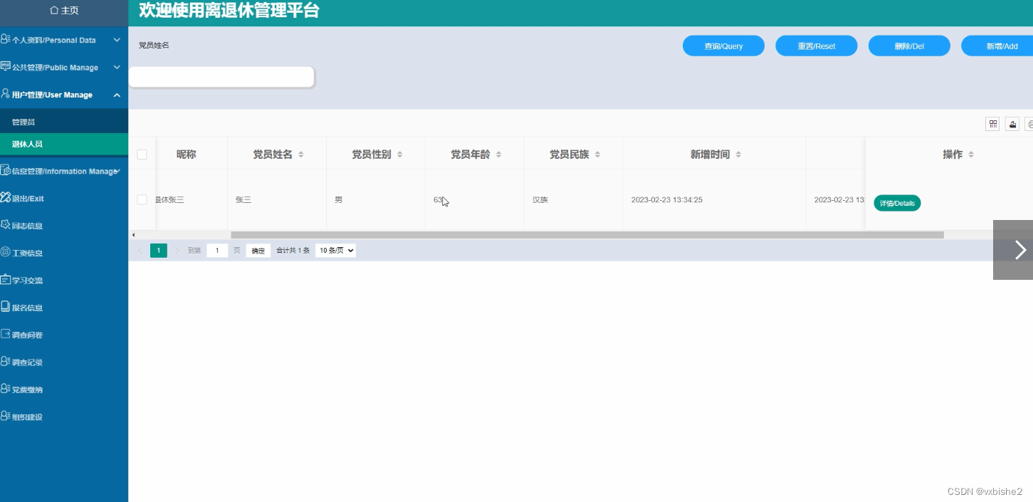 The development of the retirement management platform makes the system more convenient and efficient, and also makes the retirement management platform more systematic and orderly. The system interface is friendly and easy to operate.