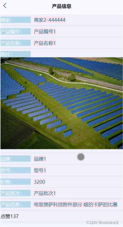 (5)产品信息:用户可以查看产品信息支持通过搜索关键词的方式对产品信息进行查询,在查询到自己想要了解的产品信息的时候,可以进入查看详细的介绍。