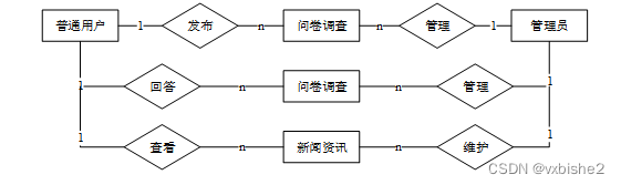 通过问卷管理系统的功能进行规划分成几个实体信息,实体信息将通过ER图进行说明,本系统的主要实体图如下: