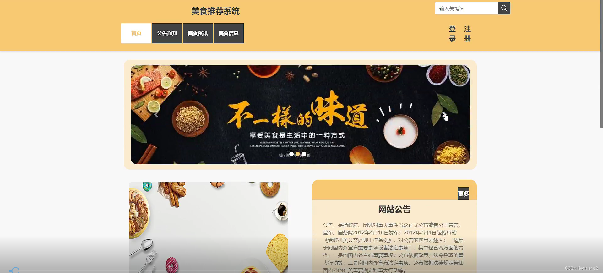 With the improvement of people's living standards, people's demand for food is also higher and higher, and the demand for all kinds of food information is increasing. Therefore, combined with the rapid development and popularity of computers, it is imperative to create a simple, beautiful and functional food recommendation system based on this to meet the needs of users to share food.