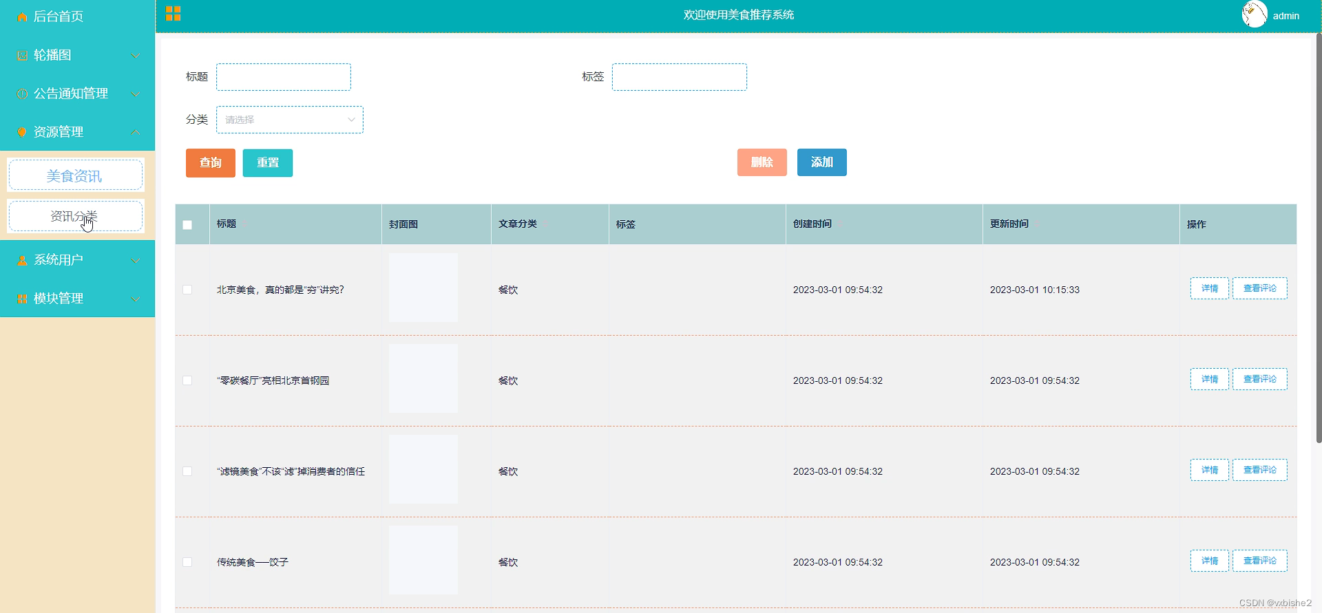 美食资讯管理界面逻辑代码如下: