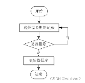 用户可选择要删除的信息进行信息删除操作,在删除信息时系统提示是否确定删除信息,是则删除信息成功,系统数据库将信息进行删除。删除信息流程图如图2-4所示。