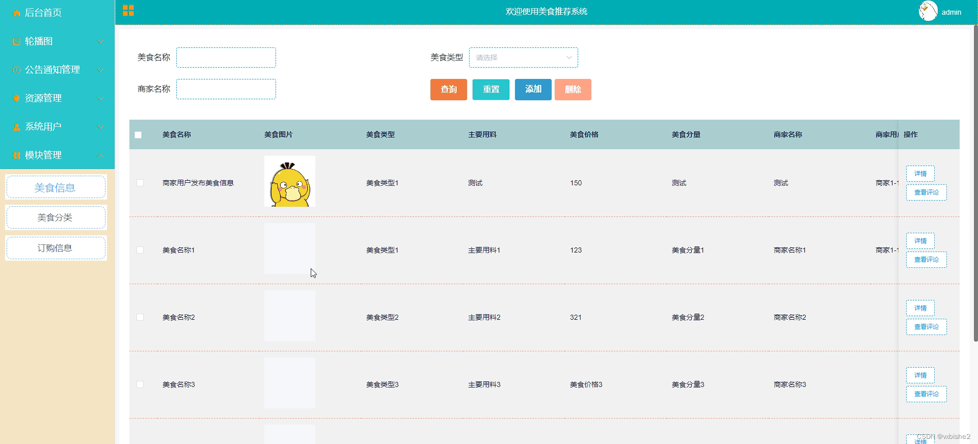 5.管理员功能,管理员可以对用户、美食信息、美食订单等信息进行管理。