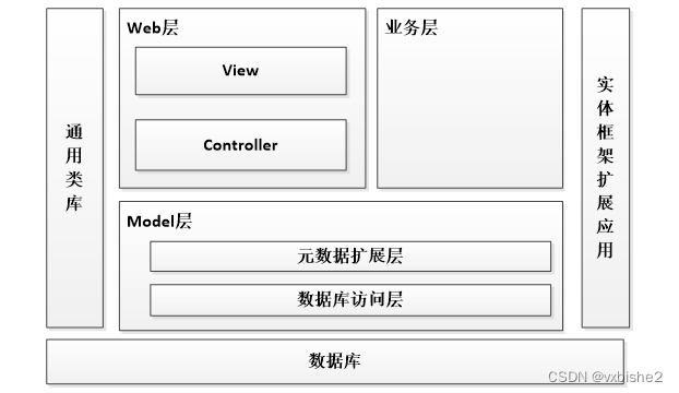 本学报期刊信息管理系统的架构设计主要分为可以3层,主要有Web层,业务层,Model层。其中web层还包括View层和Controller层,Model层包括元数据扩展层和数据访问层。