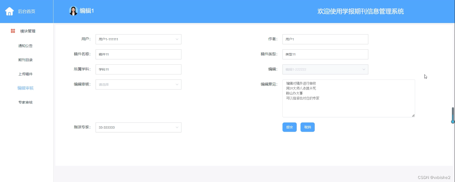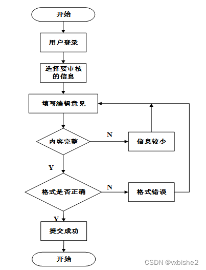 编辑可以查看稿件的详细内容、并对其进行编辑审核等操作。编辑审核流程图如下图所示。