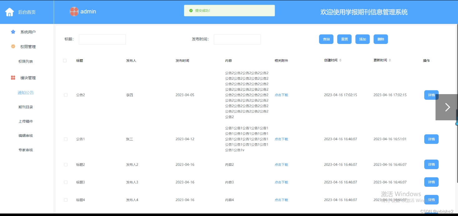 | 点击删除公告,选择公告删除 | 提示删除成功 | 与预期结果一致 |