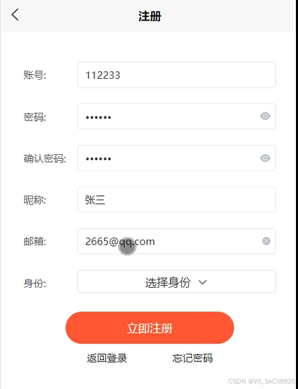 在微信小程序的评选投票系统中,用户可以通过输入账号、密码和其他信息来完成登录,如图5-1所示。
