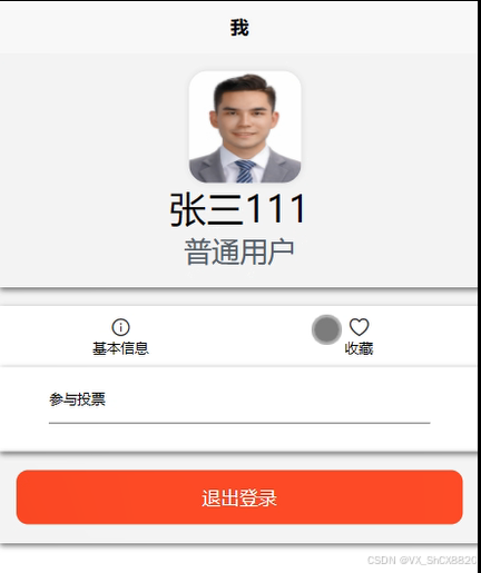 通过访问我的主业,可以能够获取自己的基本信息、收藏、参与投票,还能够轻松更新自己的个性化设置,详见图5-7。