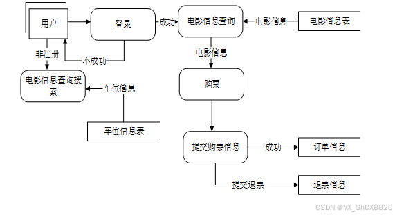 开发电影院购票管理系统最主要的一个目的就是实现用户对电影的选座购票,图2-3就是系统的数据流图。