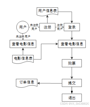 分析完电影院购票管理系统的数据流,那么接下来我们来看系统的业务流程,图2-4就是业务流程图: