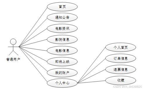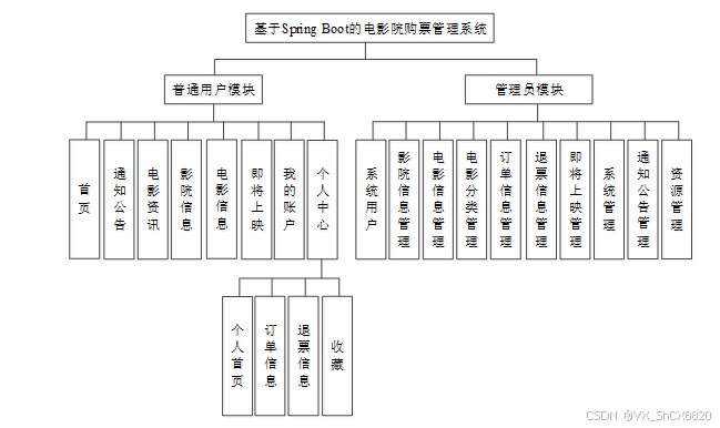 电影院购票管理系统我划分为了普通用户模块和管理员模块两大部分。