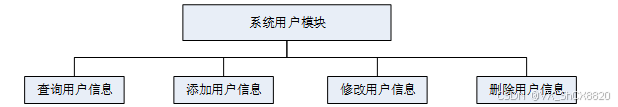 用户模块是系统中一个重要的功能模块,它涉及用户的注册、登录、个人信息管理等操作。在用户模块设计中,我们将定义用户数据的结构和属性,包括用户名、密码、邮箱等。同时,还需要实现用户注册、登录、修改密码等功能,并对用户输入进行验证和处理。用户模块的结构图如下图3-2所示: