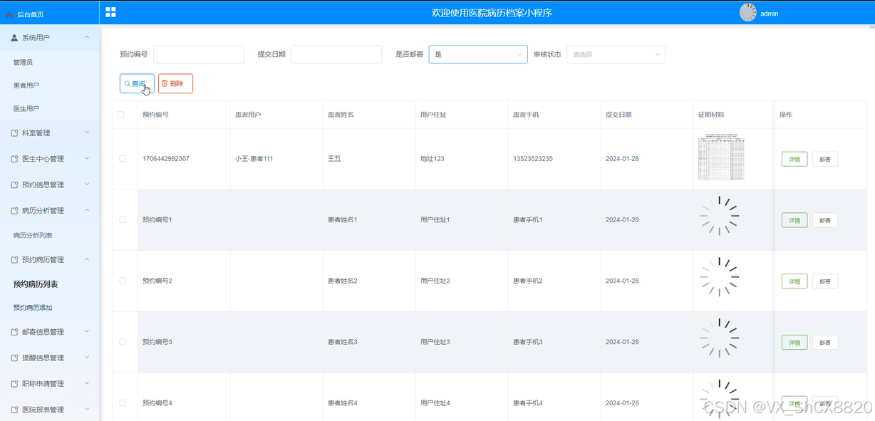 预约病历管理界面如所示。