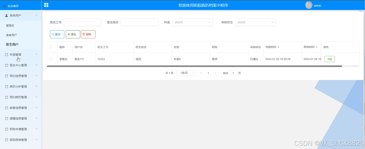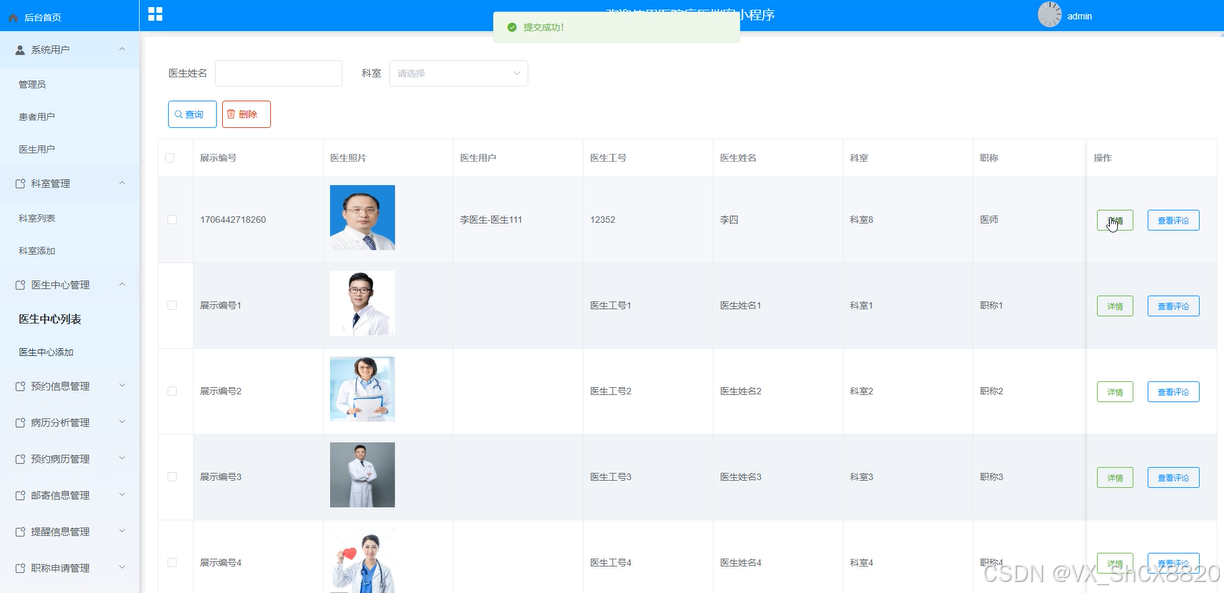 医生中心管理关键代码如下: