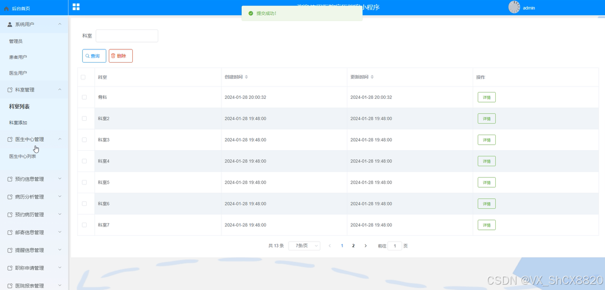 科室管理界面如下图所示。