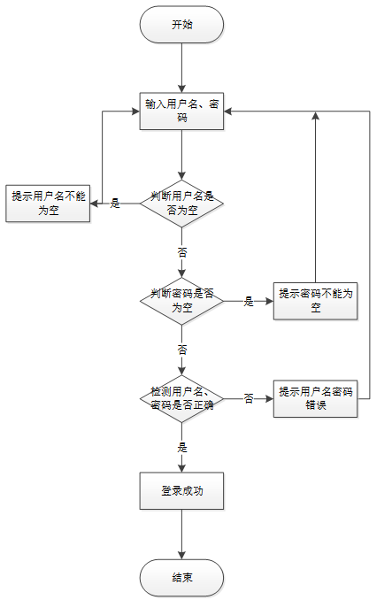 | 预期结果 | 用户名和密码正确的时候,跳转到登录成功界面,反之则显示错误信息,提示重新输入 |