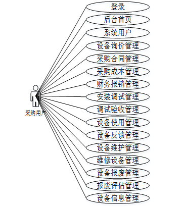- 系统用户:系统支持多种角色的用户,包括供应商用户、采购用户、设备师傅、财务用户、操作人员等,他们都可以在系统中进行查询、重置密码、查看详细信息等操作。