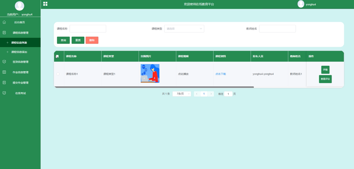 平台功能涵盖了课程管理、在线学习、考试测评、用户互动及个人中心等关键模块。课程管理功能使教师能够便捷地发布课程详情、上传教学资源,而学生则可以轻松浏览课程列表,根据个人需求选择学习内容。在线学习模块集成了视频播放、文档下载等功能,为用户随时随地获取知识提供了极大便利。考试测评模块则通过线上考试与自动评分机制,有效检验了用户的学习成效。此外,用户互动模块促进了师生间的有效沟通,进一步增强了学习效果。