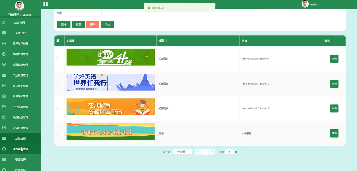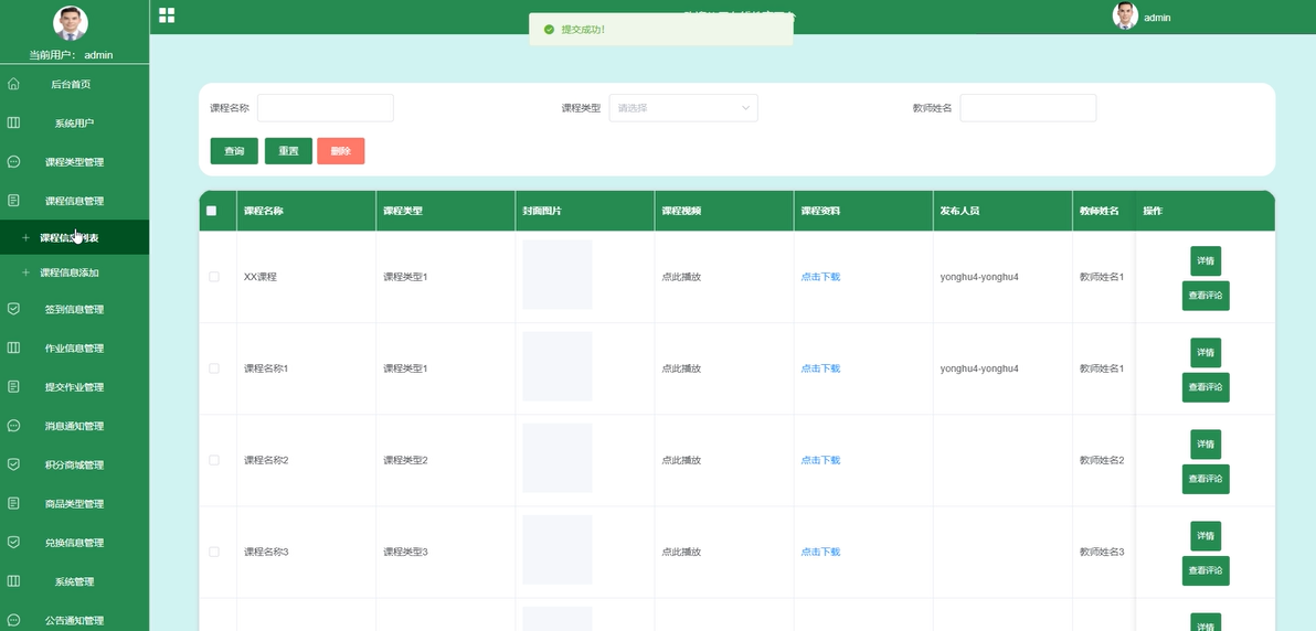 课程信息管理:发布、编辑、删除课程,管理课程资源。