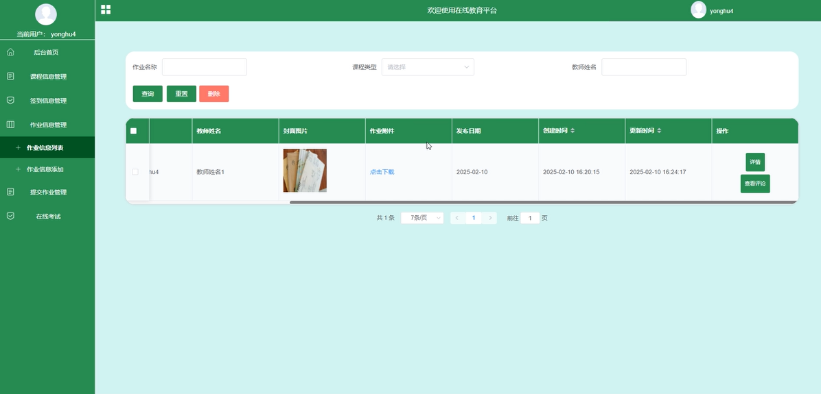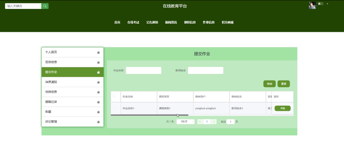 提交作业管理:查看学生作业提交情况,进行在线批改。