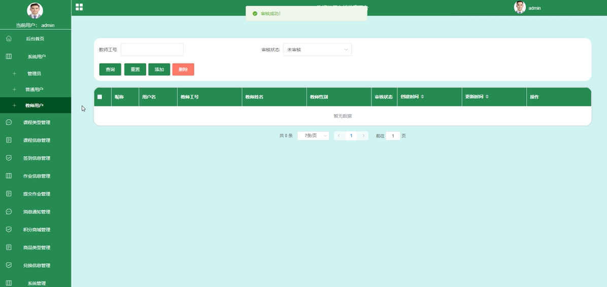 后台首页:教师专属管理界面,展示教学相关重要信息。