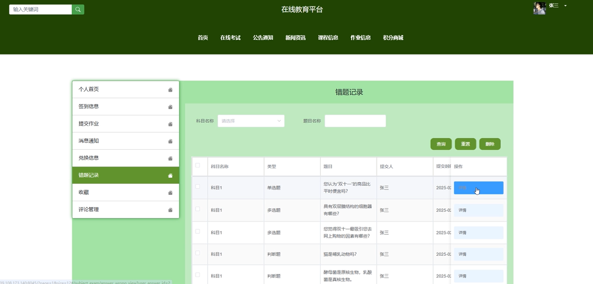 在线考试:创建、发布、批改在线考试试卷,评估学生学习效果。