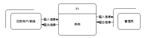 顶层数据流是指系统与外部实体之间的数据流动,描述了系统的整体数据流。在器械健身运动学习网站中,顶层数据流包括管理员录入用户信息、注册用户浏览资讯信息、提交报名信息、教练审核报名信息等。