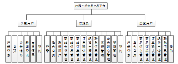 本文首先概述了校园二手物品交易平台开发的背景及其意义,接着详细阐述了系统的具体业务需求。根据这些需求,本文对系统的结构和功能模块进行了精细的设计。整个系统被划分为多个独特的功能模块,每个模块都具有其特定的功能和作用,以确保系统的高效运行和用户友好性。