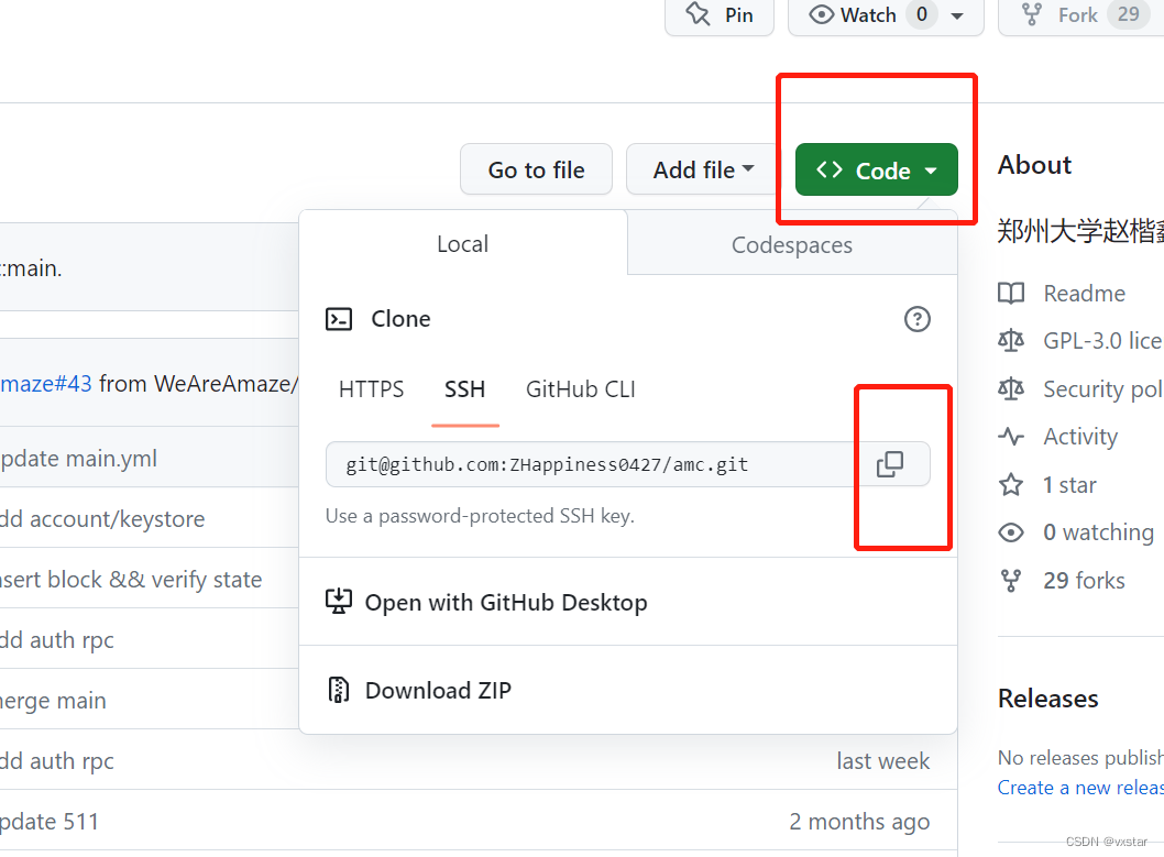 (1)使用ssh,复制url(使用ssh拉取项目,需要配置一下ssh密钥)