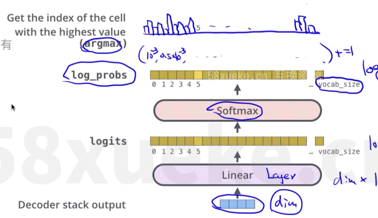 从log_pros中获取概率最大的下标,输出下标对应的单词。但是采样法可能有多样化输出,不一定是概率最大的。