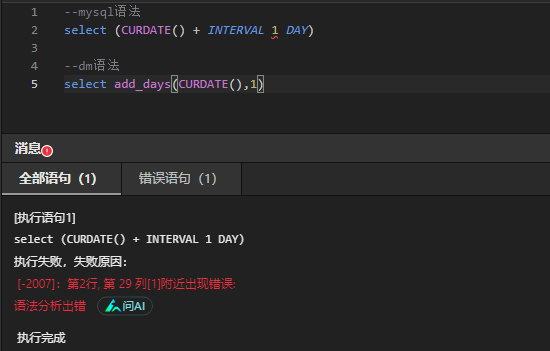 4.DM8数据库当前日期加任意值,不支持mysql的INTERVAL 1 DAY()写法