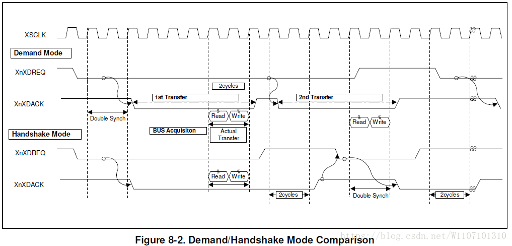 请求和握手模式是与XnXDREQ 和XnXDACK相关的协议。下图显示了他们的不同。