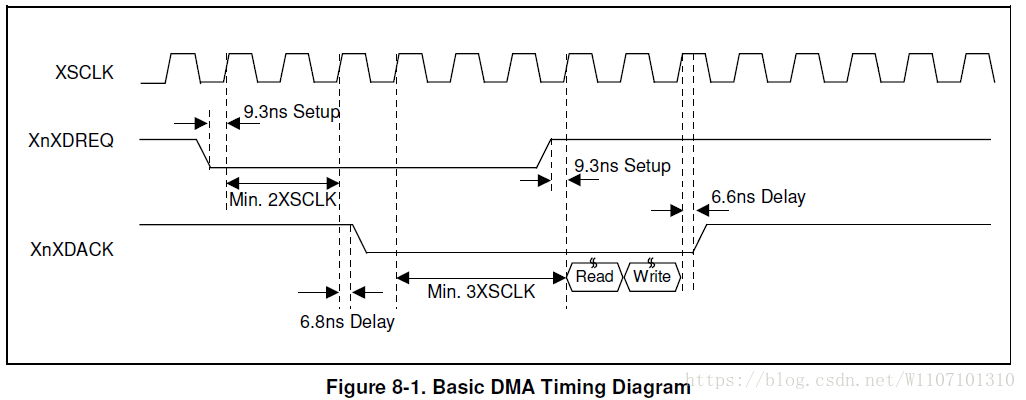 ——在所有的模式中,XnXDREQ 和XnXDACK的设置时间和延迟时间是一样的。