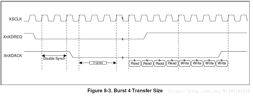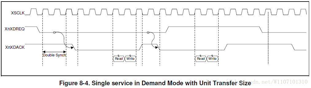 ——如果XnXDREQ的完成遇到了他的设置时间,将同步两次同时置位XnXDACK。