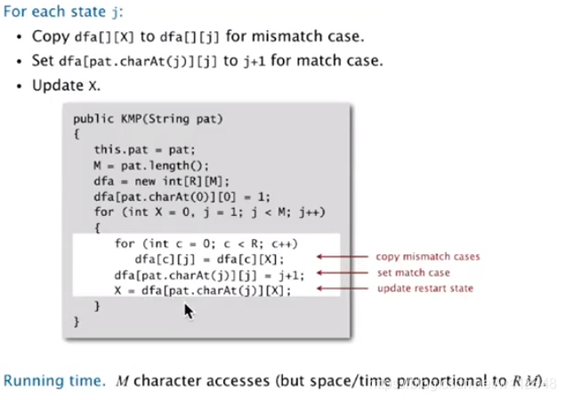 代码中的X代表用半成品DFA过一遍 [ 下标为1~j-1的字符 ](没有c)的结果