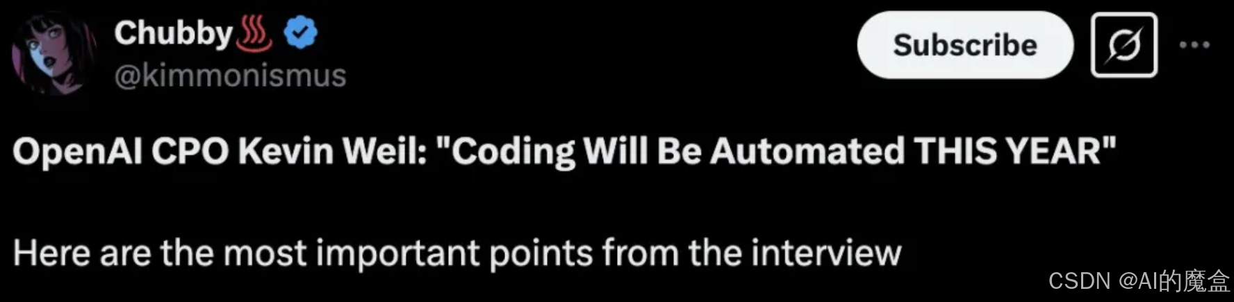 【导读】AI浪潮正席卷编程行业。OpenAI首席产品官Kevin Weil大胆预言,2025年AI将在编程领域全面超越人类。在这场技术变革浪潮中,程序员们需要重新审视自己的定位