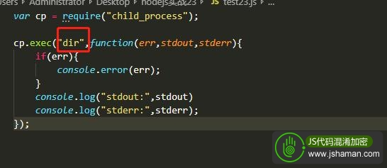 再来看一下例子,之前讲execFile时,如果直接调用dir,是不能成功的: