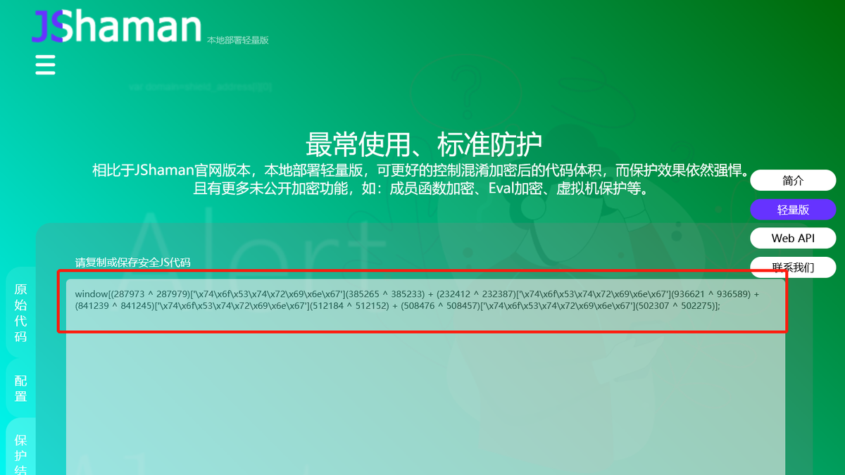 来到JShaman官网平台,对上面的代码进一步混淆: