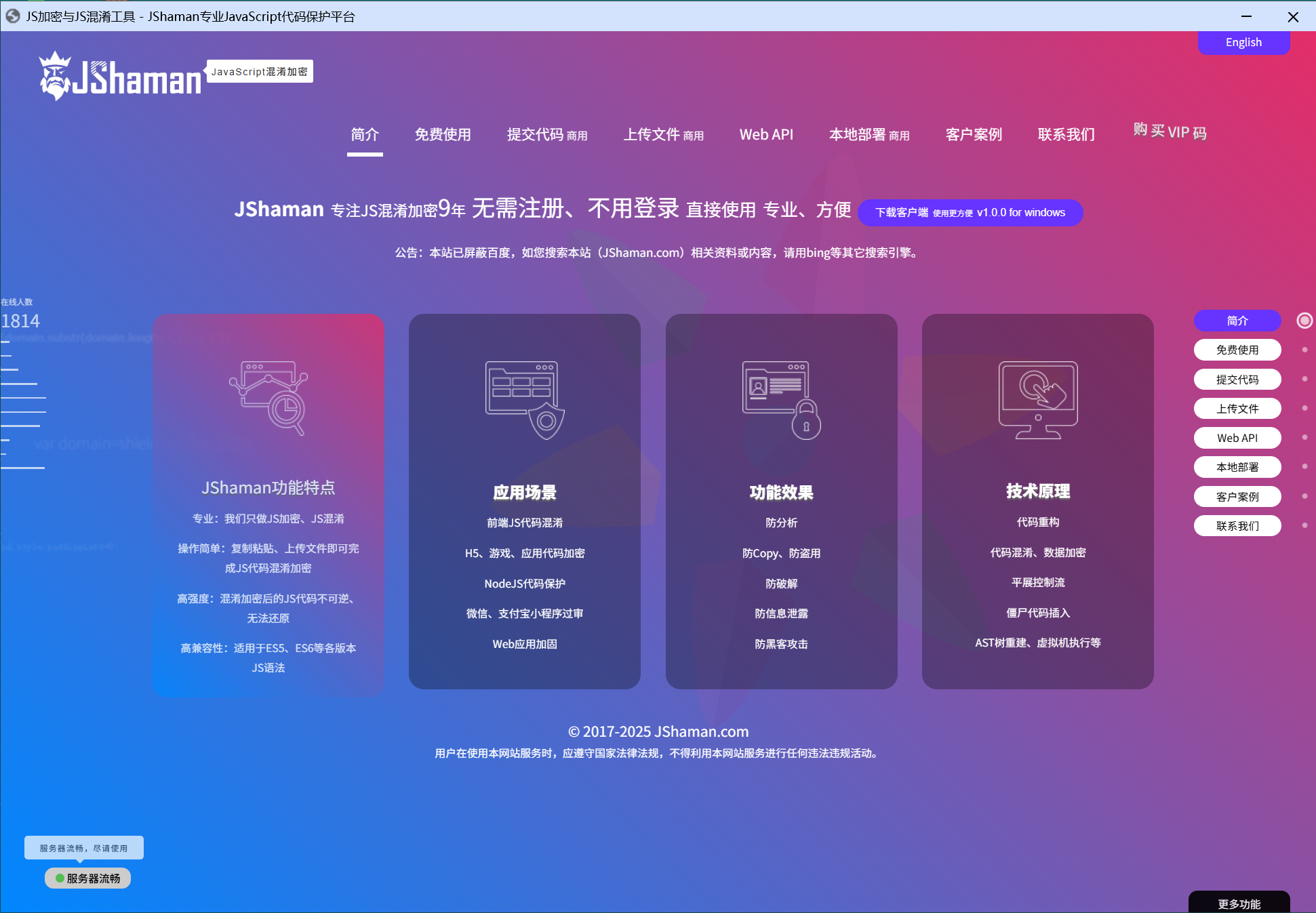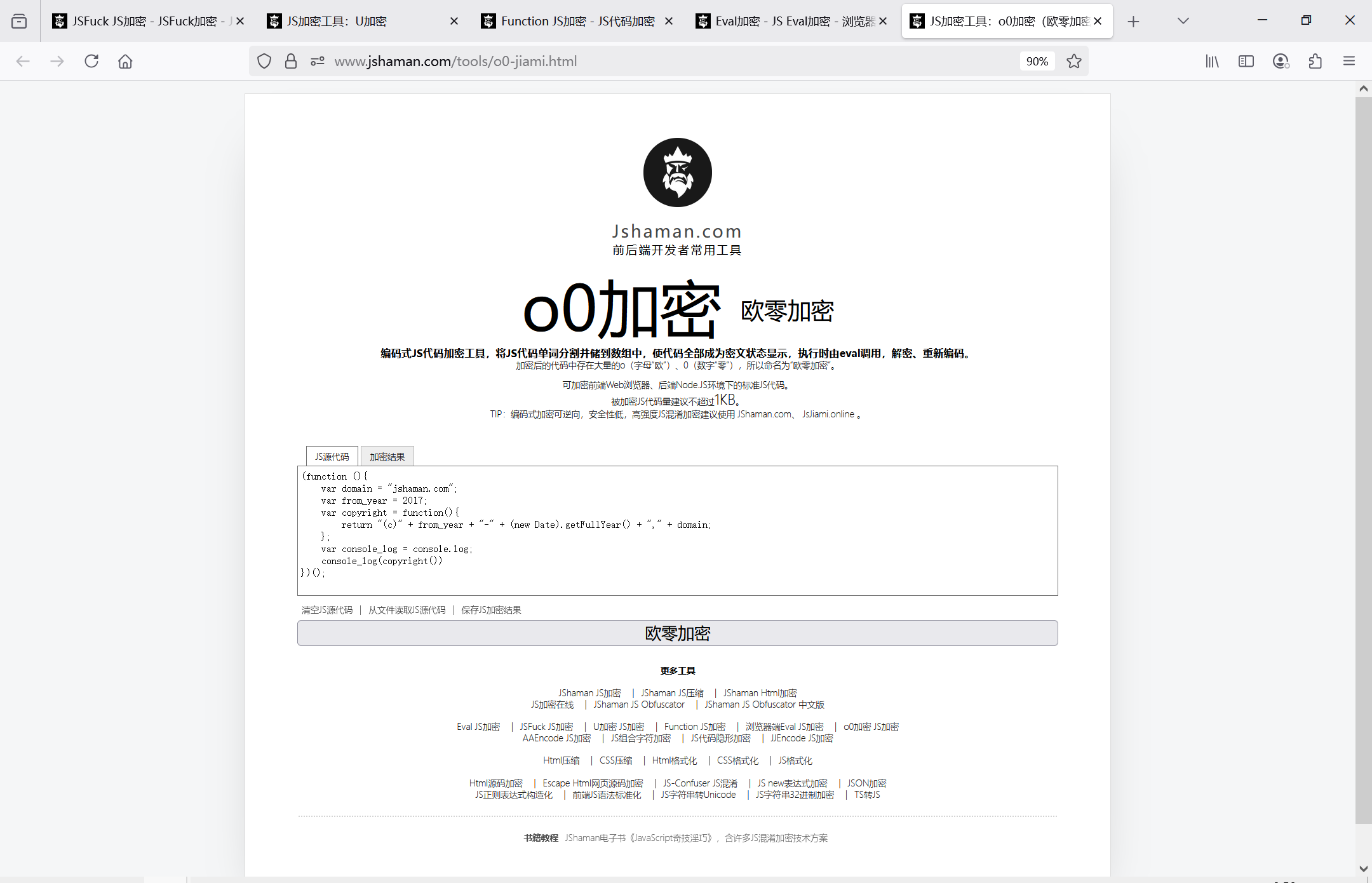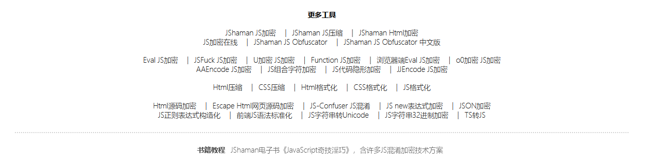 除此之外,JShaman旗下还有:html加密、JS压缩、海外版JS混淆等等功能。